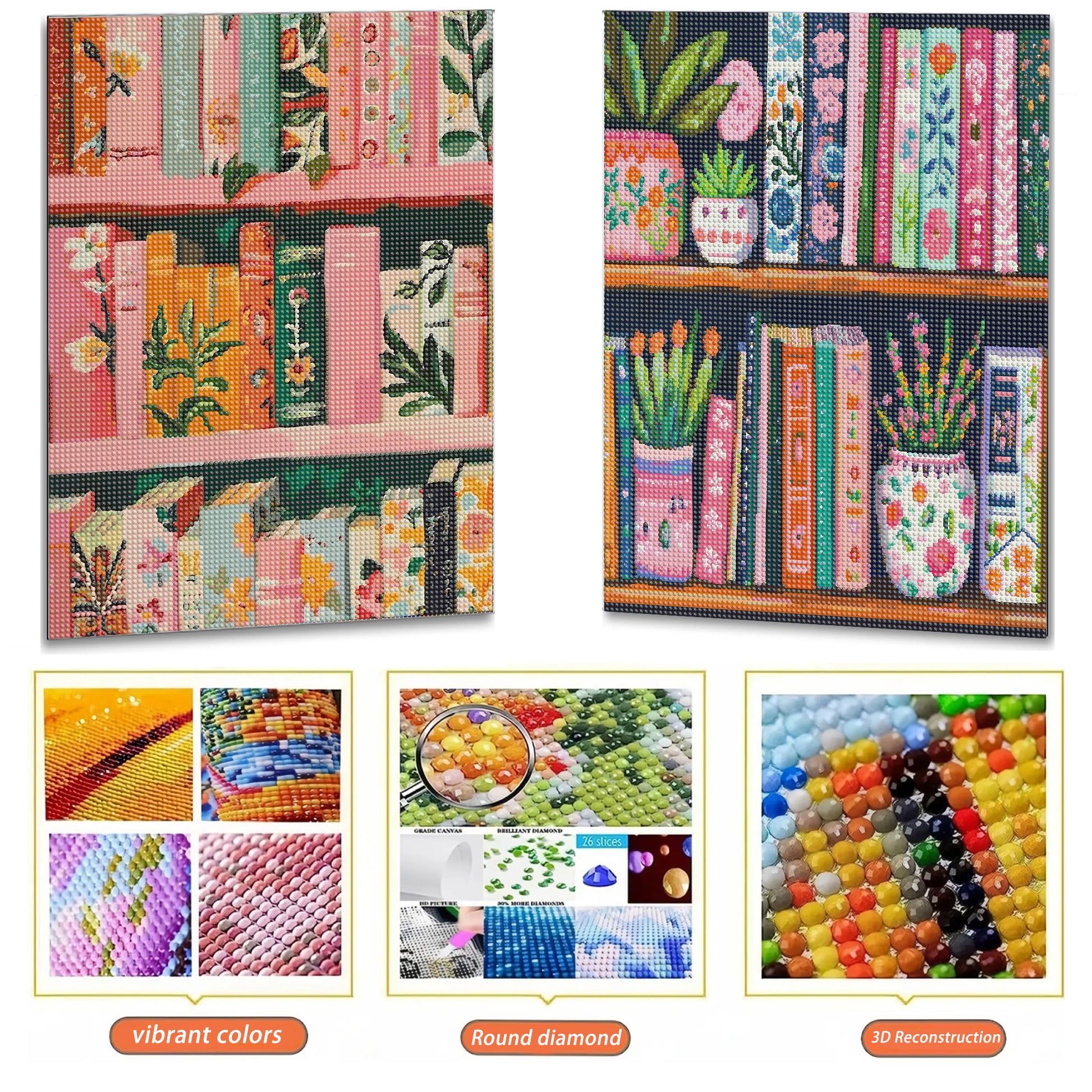 Mosaflare Diamond Art Painting Kits,2-Pack Book Art Craft Kits,Full Round Drill,Home Wall and Relaxing 12"*16"